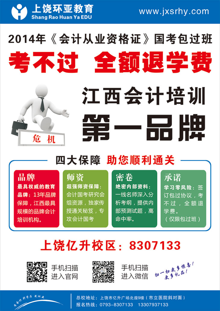 上饒零基礎(chǔ)學(xué)會計就到環(huán)亞會計培訓(xùn)學(xué)校!循環(huán)開班,學(xué)員可串班聽課直至通過考試為止!更多信息請登錄:http://www.jxsrhy.com/kjzy.html